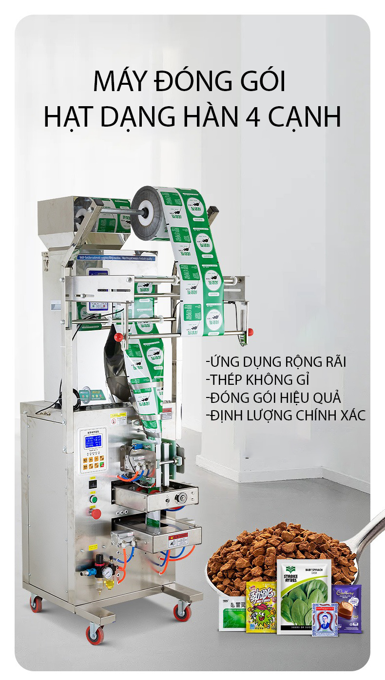- Độ chính xác cao: Hệ thống cân điện tử đảm bảo mỗi gói sản phẩm có trọng lượng đồng nhất, giảm thiểu lãng phí nguyên liệu.