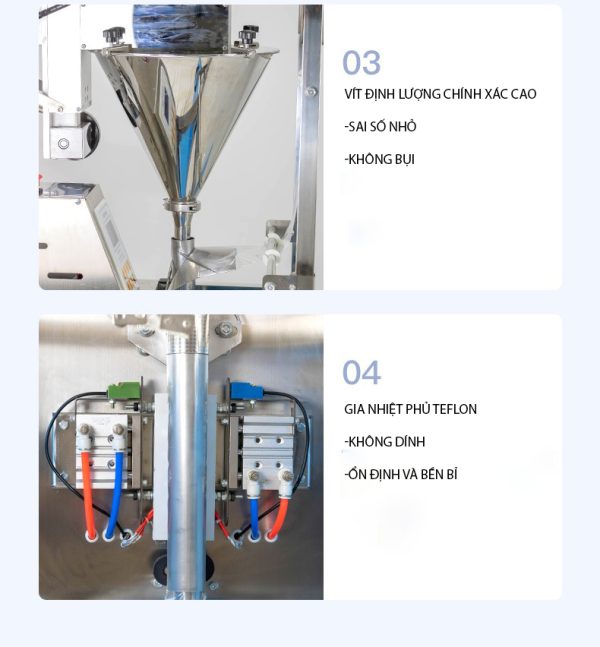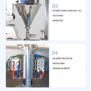 - Độ chính xác ổn định: Với các loại bột có mật độ tương đối đồng đều, máy đảm bảo định lượng chính xác, giúp sản phẩm có trọng lượng nhất quán.