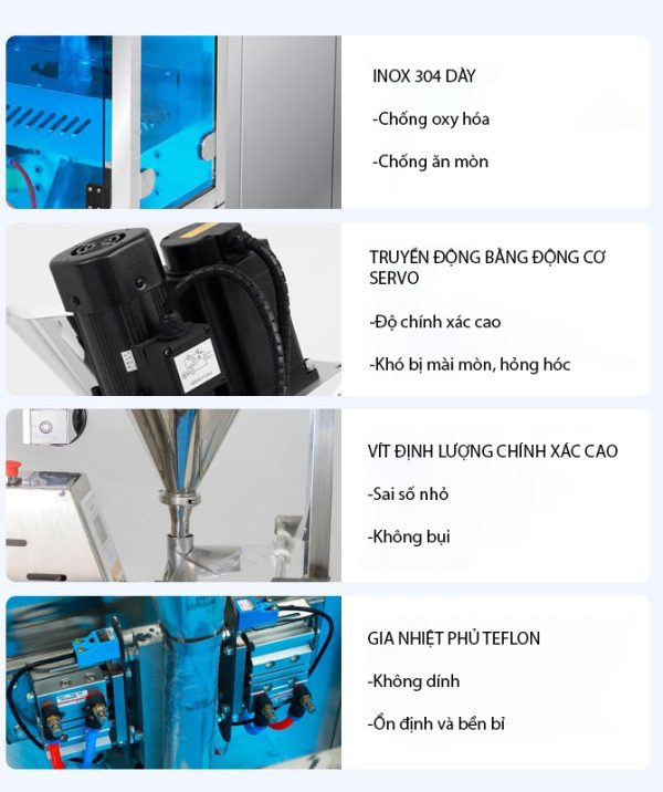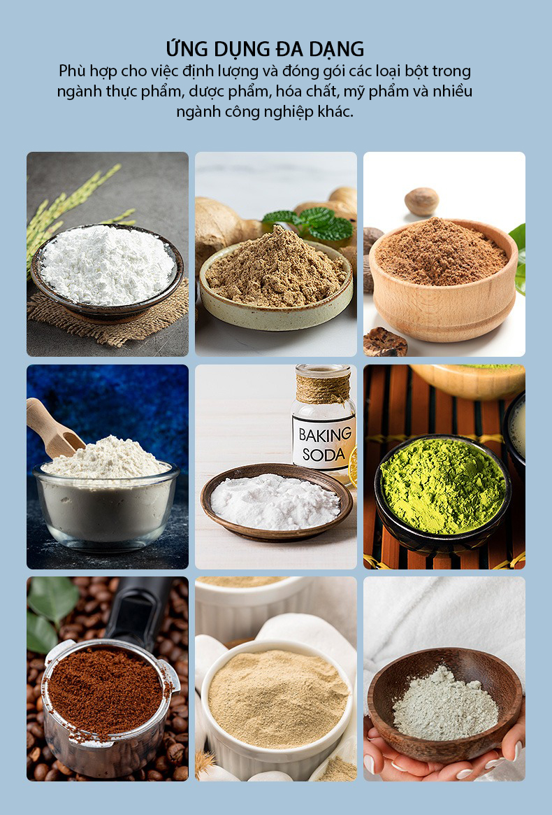 - Tính linh hoạt: Có thể điều chỉnh để đóng gói nhiều loại bột khác nhau.
